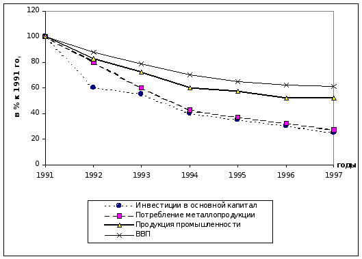 Исследование работы рельсобалочного стана 800 Нижнетагильского металлургического комбината в условиях рыночной экономикиМосковский институт стали и сплавов (технологический университет) ИиЭКурсовая научно-исследовательская работа по экономики на тему: «Исследование работы рельсо-балочного стана 800 Нижнетагильского металлургического комбината в условиях рыночной экономики» Руководитель Тарасов Б.Д. Студентка группы МЭ-94-1 Тараканова А. М. Москва 1998 год Оглавление:ИиЭ 1 Оглавление: 2 Введение 3 1. Общее состояние рынка металлов 4 Производство и потребление металла 4 2. НТМК. Производство, реконструкции, сортамент 14 2.1.Общие положения 14 2.2. Перспективы снижения себестоимости, повышения качества и конкурентоспособности металлопродукции АО НТМК 19 2.3. Реконструкция методической печи с шагающим подом 21 3. Рельсо-балочный стан 800 23 3.1. Покупатели продукции стана 800 23 3.2. Технические характеристики 23 3.3. Нагревательный печи и технология нагрева 24 3.4. Оборудование стана и технология прокатки 26 3.5. Техникоэкономические показатели 28 29 ЗДЕСЬ ФАЙЛ ИЗ EXCEL 29 Список используемой литературы: 37 ВведениеВ работе рассматривается работа рельсобалочного стана 800 Нижнетагильского металлургического комбината. Рассмотрено общее положение на рынке металла, НТМК, проанализирована работа стана, проведены расчеты производственной мощности, программы и других показателей работы стана. Расчет произведен в 3 вариантах. Предложены решения по увеличению объема продаж. 1. Общее состояние рынка металловПроизводство и потребление металлаВ первую очередь необходимо рассмотреть и проанализировать общее положение рынка металлов в РФ. Макроэкономические показатели, их объем и структура являются наиболее общими факторами, обуславливающими объем металлопотребления. Например, объективно на снижение металлопотребления, повышение доли услуг в структуре ВВП, снижение доли машиностроения или металлообработки в валовой продукции промышленности непосредственно влияет увеличение доли инвестиций в непроизводственную сферу в общем объеме инвестиций в основной капитал. Меняется технологическая структура инвестиций. Макропоказатели развития экономики России и внутреннее потребление металлопродукции