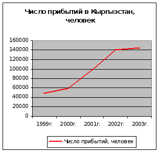 В мировой практике въездной туризм считается основным генератором поступлений иностранной валюты, поэтому необходимо рассмотреть динамику прибытий и доходов от въездного туризма в Кыргызстане (Таблица 2.21). Динамика числа прибытий туристов и поступлений от туризма в Кыргызстане с 1999 по 2003 г. Таблица 2.21