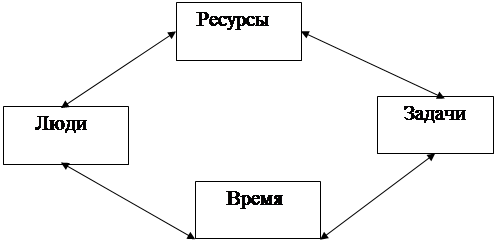 Рис.1.Связь ресурсов и времени Чтобы не отстать от конкурентов, каждая независимая производственная организация должна тщательно планировать перспективу развития собственного производства и потребностей рынка минимум на 2-3 года. Любые просчеты при этом грозят убытками и даже полным разорением. Предприятию необходимо предусматривать перспективу до мелочей по каждому этапу, начиная с разработки проекта изделия и заканчивая его сбытом, а затем и прекращением производства и выходом на рынок с новой продукцией. Все должно быть увязано с экономикой предприятия, налоговой системой и кредитной ситуацией, позициями предприятия на рынке и намерениями конкурентов, ситуацией за пределами предприятия. Планирование, административное управление и контроль за деятельностью производственного предприятия неразрывно связаны. В Японии управление и планирование представлены следующим образом (рис.2)