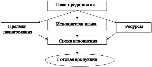 = + рис.2. Соотношение планирования и управления производственной деятельностью предприятия Аналогичного подхода к планированию и управлению производством придерживаются специалисты почти всех стран. Планирование производства на предприятии - это точное предвидение и программирование на перспективу хода производственного процесса и его результатов по этапам. В плане с учетом специализации и кооперации труда устанавливается по датам четкое задание на выполнение конкретного вида и объема работ и расходование ресурсов по каждому цеху, отделу, бригаде и рабочему. В плане предусмотрена последовательность выполнения связанных между собой работ. План всегда устремлен в будущее. С его помощью на перспективу распределяются имеющиеся ресурсы (материальные, трудовые, финансовые и природные). Если, скажем, надо изготовить машину, построить дом, то составляется общий план работы. Он включает следующие обязательные сведения: конкретные исполнители работы, ее сроки, необходимые материалы, оборудование, машины и инструменты, требуемые специалисты и производственный персонал, стоимость работы в денежном выражении и источники финансирования. Планирование как метод хозяйственного предвидения и программирования основан на детальных расчетах и указаниях. С одной стороны, в плане содержится задание на перспективу для всего персонала – что и когда должен делать каждый работник. С другой стороны, в нем содержится предписание для руководителей – какие управленческие решения поэтапно они должны принимать, чтобы предприятие достигло поставленной цели (таблица 1). Таблица 1 Основные задачи планирования