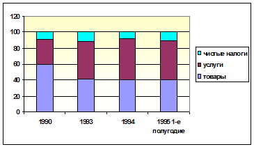 (рост на 12%), химической и нефтехимической (рост на 9%), цветной металлургии (тот же объем, что и в прошлом году) и топливной промышленности (падение производства всего на 2%). Впервые за последние годы наметился рост производства некоторых, пока еще немногочисленных, видов продукции машиностроения. Темпы падения производства потребительских товаров замедлились более чем в 2 раза (с 29 до 13 4) по равнению с 1994 г., но были выше, чем в 1993 г. Особенно сильно упал выпуск продукции в легкой промышленности – на 38%, в пищевой – на 10%. На 10% обратилось производство и в лесной, деревообрабатывающей и целлюлозно-бумажной промышленности. Продолжалось разрушение многих наукоемких производств: например, выпуск станков с ЧПУ в очередной более чем в 2 раза. Наметившиеся позитивные сдвиги пока не глубоких и прочных корней. Внешний спрос вряд может служить достаточной основой для восстановления промышленного роста в России. Емкость рынка по тем товарам, которые может поставлять сия, далеко не безгранична и подвержена.