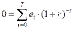 Процентная ставка, при которой капитализированная текущая стоимость платежного ряда принимает значение, равное 0, называется внутренней процентной ставкой этого ряда и обозначается через r. Она определяется из уравнения: