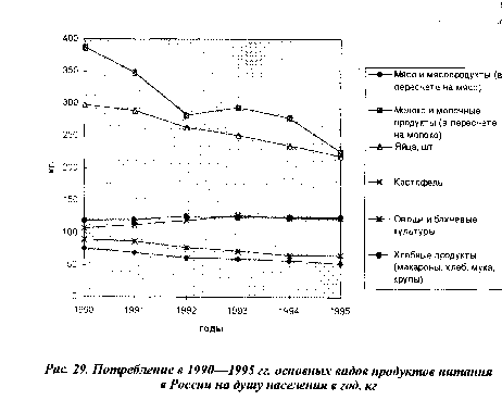 2.3. Выкупная цена акций (долей) хозяйственного общества определяется учредителями общества в соответствии с нормами действующего законодательства. При этом учредители вправе привлечь независимого оценщика для определения рыночной цены акций (долей). 3. Заключительные положения Настоящее Положение рекомендуется к применению для предприятий, развивающих производство в рамках созданных на территории Республики Бурятия территориально-производственных зон свободного предпринимательства. Таблица 7 Потребление основных продуктов питания населением России в 1980—1995 гг.1
