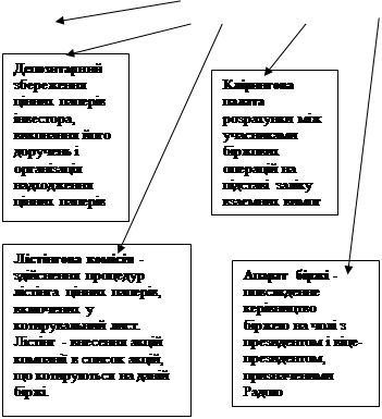 Тема: Фондова біржа як елемент ринкової інфраструктури. . З М І С Т Вступ 1. Поняття, суб'єкти і класифікація. 2. Основні види операцій. 3. Розвиток фондових бірж в Україні. ВисновкиЛітератураВступ Ринок цінних паперів. Фіктивний капітал. Випущені акціонерними товариствами акції й облігації поступають в обіг, створюючи ринок цінних паперів. Про масштаби цього ринку свідчить той факт, що сьогодні в капіталістичних країнах вартість всіх акцій і облігацій, що знаходяться в обігу, перевищує річний обсяг їх валового національного продукту. Більша частина цінних паперів реалізується через спеціально створений інститут - фондову біржу (цінні папери іноді називають фондами). Акціонерний капітал живе як би подвійним життям, маючи дві форми існування. З одного боку, це дійсний капітал, що реально функціонує в системі суспільного відтворення. З другий капітал, поданий у формі цінних паперів. Капітал, інвестований у цінні папери, існує як би в особливій системі координат, і його динаміка безпосередньо визначається станом, кон'юнктурою ринку цінних паперів, далеко не завжди адекватно відображаючи реальні економічні процеси. Саме цей двійник реального капіталу, називаний фіктивним капіталом, що має особливий рух поза кругообігом дійсного капіталу, як специфічний товар і обертається на фондовій біржі. Категорія фіктивного капіталу відбиває подальший розвиток капіталізму, і по мірі монополізації виробництва її значення зростає. Джерело прибутків по фіктивному капіталу цілком схований. Створюється уявлення, що цінні папери мають здібність приносити прибуток самі по собі. Особливо це виявляється в облігаціях державних позик, коли держава непродуктивно розтрачує отримані кошти. Ця форма фіктивного капіталу не тільки не має вартості, але часто і не представляє ніякого реального капіталу: адже відсотки по облігаціях виплачуються в основному за рахунок податків. В даний час, у зв'язку зі значним розвитком державного сектору в економіці і збільшенням розмірів державного боргу, ринок цінних паперів усі більше заповнюється цінними паперами, що випускаються урядами. Особливо це помітно в тих країнах, де фондові біржі прямо контролюються урядами й активно використовуються для рефінансування державного бюджету, наприклад, Італія, у меншому ступені Німеччина. Зрощування монополій і держави виявляється в їх спільних операціях із фіктивним капіталом. Держава усе частіше виступає на ринку цінних паперів як боржник, кредитор і гарант здійснюваних операцій. У епоху, коли інфляція, насамперед у результаті зростаючих дефіцитів державного бюджету, набуває широкого розмаху, зв'язок фіктивного капіталу з державою збільшує інфляційні процеси, і усе більший контроль держави над операціями з фіктивним капіталом для покриття бюджетного дефіциту може привести до виникнення кризових ситуацій. 1. Поняття, суб'єкти і класифікація. Фондова біржа являє собою певним чином організований ринок, на якому власники цінних паперів здійснюють через членів біржі, що виступають у якості посередників, операції купівлі - продажу. Контингент членів біржі складається з індивідуальних крамарі цінними паперами і кредитно-фінансових інститутів. Коло паперів, із якими здійснюються операції, обмежений. Щоб потрапити до числа компаній, папери яких допущені до біржової то