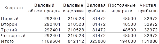 Новый магазин планировалось открыть в мае 1997 года. Позже у нас будет возможность сравнить плановые и фактические показатели работы ЗАО «Орбита». Прибыль на инвестируемый капитал. Новый магазин. Год Чистая прибыль 1996 54450 1997 60220 1998 131888 Общая чистая прибыль 246558 Первоначальные инвестиции 50000 Стоимость нового оборудования 56500 Затраты на переезд включены в стоимость нового оборудования. Итого инвестиций (реинвестиций) 106500. Чистая прибыль за вычетом инвестиций: 246558 – 106500 = 14058. Чистая фактическая прибыль для инвестора к концу 1996 года должна была составить 14058 у. е., т. е. Процентная (кредитная) ставка для инвестора составит 31,5% от первоначальной суммы инвестиций 106500 у. е. Инвестору придется ждать почти три года, чтобы получить прибыль, но к концу этого периода она составит 31,5% от его инвестиций1 . Таблица 4. Прогноз продаж до конца 1997 года.