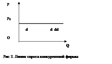 Это значит, что конкурентная фирма может продать любое количество товара по цене P0 или ниже ее. При рассмотрении графика спроса конкурентной фирмы возникает вопрос, как горизонтально расположенная линия спроса фирмы сочетается с отрицательным наклоном кривой спроса? Кривая спроса имеет отрицательный наклон, когда показываются все возможные комбинации выбора покупателя на рынке. Фирма, со своей стороны, может продать по цене равновесия любое количество единиц товара. Именно это и показывает горизонтально расположенная линия спроса фирмы (рис.3).