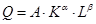 K – количество задействованного капитала; L – количество задействованного труда; a , b - степенные показатели, показывающие, во сколько увеличится объем продукции Q , если на 1% увеличится количество капитала или труда, оставляя количество другого фактора фиксированным.