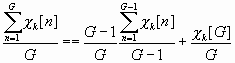 в первом из которых фигурирует оценка частоты появления k-го класса, вычисленная по G-1 наблюдениям, то после очевидных преобразований получим