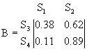 где Для иллюстрации приведем конкретный числовой пример: пусть известны значения переходных вероятностей матрицы Переходная матрица в блочной системе будет выглядеть так:
