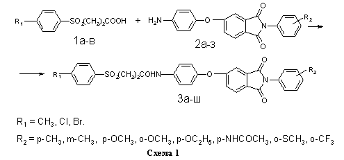 Соединения 2а-з получали на основе п-нитрохлорбензола и 3,4-ксиленола, через стадии образования 4-нитро-3/,4/диметилдифени-локсида 4, 4-нитрофеноксифталевой кислоты 5 и нитрофенокси-N-фенилфталимидов 6а-з (схема 3) по методикам, изложенным в работах [12,13].