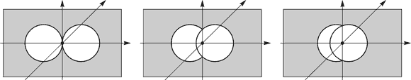 Рис. 7. Две полости в однородном изотропном пространстве Совместим начало декартовой системы координат xyz с центром пробной массы m (см. рис. 7б). Согласно начальным условиям, расположение вещества, находящегося за пределами обоих полостей, симметрично относительно начала координат. Силы тяготения, создаваемые веществом вдоль осей координат, можно описать уравнением: [Fx , Fy , Fz ] = [–Fx , –Fy , –Fz ]. Наличие неуравновешенных сил тяготения в произвольно выбранном направлении, не совпадающем с осями координат, предполагает несколько проекций одной силы, что нарушает условие симметрии. В случае зеркально-симметричного расположения двух полостей относительно пробного тела m, сила тяготения в начале координат отсутствует при любом другом положении двух полостей (см. рис. 8).