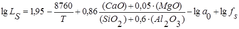 Ls = 57 Содержание серы в ковше определяется по уравнению: