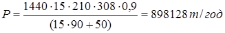 где Р1 – пропускная способность при отливке заготовки определенного сечения, т/год; n – количество плавок в серии при разливке методом плавка на плавку (принимаем n = 15 плавок); М – масса металла, т; Ф – фонд времени работы МНЛЗ, сут; τ1 – время разливки стали из сталеразливочного ковша, мин; τ2 – время подготовки машины к приему плавки без изменения размеров слитка, мин. Принимаем τ1 = 90 мин, τ2 = 40 мин. Ф = 365 – (Тк + Тпп + Тт), (35) где Тк – продолжительность капитального ремонта установки, 10 сут.; Тпп – продолжительность планово-предупредительных ремонтов, 17 сут.; Тт – продолжительность текущих ремонтов, 30 сут. Тогда Ф = 365 – (10 + 17 + 30) = 308 сут. Производительность МНЛЗ равна: