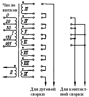 Рис. 7. схема сварочного трансформатора. Таблица 1. Намоточные характеристики трансформатора.