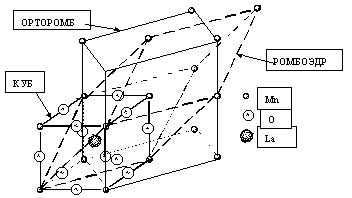 Происходит деградация рабочей газовой среды, нарушается устойчивость разряда, падает мощность, и прибор перестает излучать. Наряду с этой кардинальной проблемой возникают проблемы стабильности тлеющего разряда, устойчивости материалов конструкций в плазме и т. п. Например, катод, традиционно выполненный из металлов (как правило, из никельсодержащих сплавов, иногда с добавками металлов платиновой группы), испаряясь, оседает на зеркалах, волноводе и препятствует выводу излучения. С момента начала разработок СО2-лазеров (1964) физики и химики ищут пути преодоления этих и многих других материаловедческих проблем квантовой электроники. В частности, для предотвращения катастрофической деградации углекислого газа используют систему прокачки с постоянным обновлением среды, стали применять дополнительные системы регенерации, где в качестве катализаторов применяют металлы Pt-группы. Однако использование дополнительных систем усложняет конструкцию, делает ее громоздкой и ненадежной, а в случае отпаянных СО2-лазеров (которые из-за своей миниатюрности в зарубежной литературе получил название the hand-held laser) для космической и авиационной связи оказывается просто неприемлемым. В 1983 году кафедра физической химии Уральского государственного университета была подключена к работе над государственной программой создания принципиально нового прибора для космической связи - отпаянного волноводного СО2-лазера. Первоначально перед нами, химиками, была поставлена конкретная задача - разработать миниатюрный каталитический блок, который можно было бы разместить внутри hand-held laser, не нарушая его оптической системы. Для поиска катализаторов были выбраны нестехиометрические оксиды 3d-переходных (Mn, Co, Ni, Cu) редкоземельных (La, Pr, Nd) металлов. В этом ряду соединений особое место занимают манганаты, кобальтаты и купраты лантана с общей формулой La1-x Mex MO3±y (Me = Ca,Sr,Ba; M = Mn,Co,Cu). Эти соединения обладают перовскитоподобной структурой, которая является очень лабильной и по мере изменения состава, температуры и давления кислорода в газовой фазе может искажаться. Элементарная перовскитоподобная кристаллическая ячейка с возможными видами искажений представлена на рис. 2. Наличие в кислородных октаэдрах ионов кобальта и марганца, склонных к кооперативным взаимодействиям, к изменению степени окисления и различным магнитным спиновым состояниям, делают эти объекты уникальными по сочетанию магнитных, электрических и каталитических свойств.