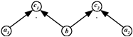 Рис. 8 Сложность леса в дальнейшем будем характеризовать как суммарную сложность деревьев, его составляющих: = (c1)+(c2) = 6+6 = 12; 1) c1 = a1·b, b = c1/a1; 2) c2 = a2·b, c2 = a2·c1/a1. Назовем деревья I.1 - I.4 деревьями I порядка сложности. Систематизацию задач в систему (систематизация - мыслительная деятельность по установлению более удаленных отношений) рассмотрим на примерах получения деревьев более высоких порядков сложности. Задача 3. Скорость мотоциклиста на 20 км/ч больше скорости велосипедиста. Найти скорость велосипедиста, если известно, что расстояние между двумя пунктами, равное 96 км, мотоциклист проезжает за 3 часа. Моделью структуры решения задачи является дерево. В модели два отношения: отношение зависимости и отношение разностного сравнения (рис.9): с км - расстояние между пунктами; a2 км/ч - скорость мотоциклиста; a1 км/ч - скорость велосипедиста; b ч - время. 1) c = a2·b, 2) a2 = a1+20, 3) c = (a1+20)·b, a1 = (c-20b)/b. = 2·5+2·3 = 16.