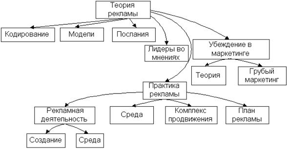 Рис. 35. Роли исследований и продвижения в маркетинге 9.2. Состав и основные положения теории и практики рекламной деятельности Структура рекламы как одного из видов продвижения показана на рис. 36.