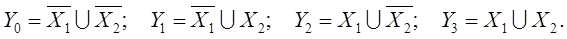 С – сигнал считывания; З – сигнал запрета; МК – мультиплексор; ВМС – выявитель максимального сигнала; ГТИ – генератор тактовых импульсов. МК- устройство для передачи сигнала с любого из входов на одну общую шину. Вход, с которого сигнал передаётся на выход, выбирается в зависимости от вида параллельного двоичного кода, подаваемого на управляющие входы. Сигналы от датчиков следуют на входы ППА и МК, которые находятся в закрытом состоянии и открываются при поступлении импульса с ГТИ. Сигнал с выхода ППА анализируется в ВМС- схема сравнения на N входов, на выходе ВМС формируется параллельный двоичный код, соответствующий номеру канала с наибольшей погрешностью аппроксимации. При поступлении на МК импульса с ГТИ на выход идёт сигнал канала, двоичный код номера которого воздействовал на управляющие входы МК. После преобразования в АЦП сигнал в параллельном двоичном коде и код адреса записываются в память БС. При поступлении импульса считывания с ГТИ на БС параллельный код преобразуется в последовательный, и сигнал передаётся в линию связи. Рассмотрим простейшую схему выделения максимального сигнала с использованием диодных сборок, т.е. диодных схем «И» и операционных усилителей, выходной сигнал которых является двоичным кодом канала с максимальной погрешностью аппроксимации. Использование диодных сборок основано на том, что между операциями алгебры логики и операциями выделения максимума и минимума существует определенная аналогия: Для получения на выходе на выходе схемы выделения максимального сигнала, соответствующего кода необходимо на выходы этой схемы подключить по определенным правилам к инверсным и прямым входам операционные усилители.