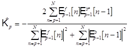Несложно показать, что коэффициент отражения обладает следующим свойством (является коэффициентом частной корреляции между ошибками линейного предсказания вперед и назад) :