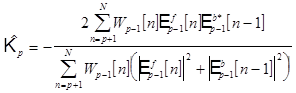 1.4.3.2. Гармонический алгоритм Берга . Алгоритм Берга идентичен геометрическому, однако оценка коэффициента отражения находится из других соображений, а именно : при каждом значений параметра p в нем минимизируется арифметическое среднее мощности ошибок линейного предсказания вперед и назад (то есть выборочная дисперсия ошибки предсказания):