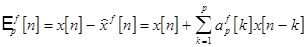 Выражение для обновления временного индекса у квадрата ошибки линейного предсказания вперед :