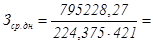 где Фдн – дневной фонд заработной платы, руб; Fпл =224,375 дней - плановый фонд рабочего времени; Р – число основных производственных рабочих, чел ; Тотп =24 дня - продолжительность основного отпуска.