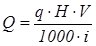 где q = 20 ккал/(ч×м3 ) – расход тепла в килокалориях в час на 1м3 здания; Н = 4320 ч - число часов в отопительном периоде; i = 540 ккал/т - теплота испарения; V - объем здания, м3 .