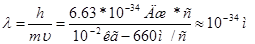 Если это выражение справедливо, как предположил де Бройль, для любого материального объекта, то длина волны тела массой т, движущегося со скоростью v, может быть найдена так: