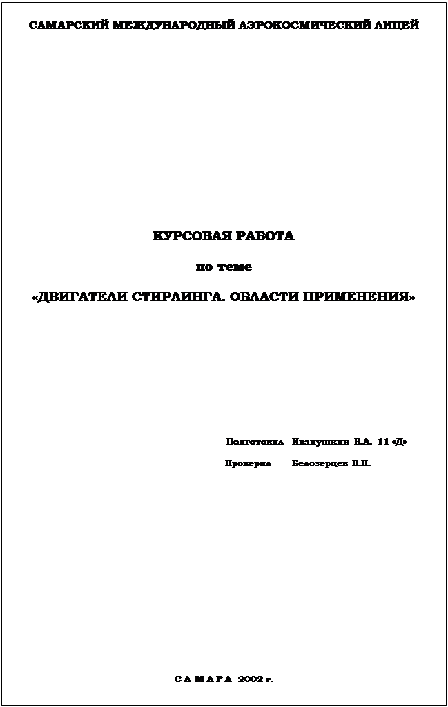 С О Д Е Р Ж А Н И Е Стр. В в е д е н и е . . . . . . . . . . . . . . . . . . . . . . . . . . . . . . . . . . . . . . . .. . 3 1. Что представляет собой двигатель Стирлинга? . . . . . . . . . . . .. . 4 2. Классификация двигателей. . . . . . . . . . . . . . . . . . . . . . . . . . . . 7 3. Схема работы двигателя Стирлинга . . . . . . . . . . . . . . . . . . . . .11 4. Рабочие характеристики и особенности конструкции . . . . . . .13 5. Очерк развития двигателя Стирлинга . . . . . . . . . . . . . . . . . . .15 6. Области применения . . . . . . . . . . . . . . . . . . . . . . . . . . . . . . . . 18 6-1. Автомобильные двигатели . . . . . . . . . . . . . . . . . . . . . . . . . .18 6-2. Криогенные газовые машины . . . . . . . . . . . . . . . . . . . . . . 19 6-3. Рефрижераторные установки . . . . . . . . . . . . . . . . . . . . . . 20 6-4. Электрогенераторы малой мощности . . . . . . . . . . . . . . . .. 20 6-5. Двигатели для морских судов . . . . . . . . . . . . . . . . . . . . . . .21 6-6. Подводные энергетические системы . . . . . . . . . . . . . . . . .22 6-7. Солнечные энергетический установки . . . . . . . . . . . . . . . .22 6-8. Механический привод в аппаратах «искусственное сердце» . . . . . . . .. .. . . . . . . . . . . . . . . . . . . . . . . . . . . . . . . 23 6-9. Универсальные энергетические системы . . . . . . . . . . . . . 23 З а к л ю ч е н и е . . . . . . . . . . . . . . . . . . . . . . . . . . . . . . . . . . . . . 25 Л и т е р а т у р а . . . . . . . . . . . . . . . . . . . . . . . . . . . . . . . . . . . .. 27 П р и л о ж е н и е . . . . . . . . . . . . . . . . . . . . . . . . . . . . . . . . . . . . 28 В В Е Д Е Н И Е На рубеже веков человечество смотрит в будущее с надеждой. Надежда эта вполне оправдана: ученая мысль не стоит на месте, напротив, предлагает все новые и новые разработки, внедряя в нашу жизнь все более экономичные, экологически безопасные и перспективные технологии. В полной мере это касается альтернативного двигателестроения и использования так называемых "новых" альтернативных видов топлива: ветра, солнца, воды и других источников энергии. Двигатели - сердце современной цивилизации. Они обеспечивают рост производства, сокращают расстояния. Благодаря им человек получает энергию, свет, тепло, информацию, Наиболее распространенные в настоящее время двигатели внутреннего сгорания имеют ряд существенных недостатков: их работа сопровождается шумом, вибрациями, они выделяют вредные отработавшие газы и потребляют много топлива. Известен класс двигателей, вред от которых минимален, - это двигатели Стирлинга. Они работают по замкнутому циклу, без непрерывных микровзрывов в рабочих цилиндрах, практически без выделения вредных газов, да и топлива им требуется значительно меньше. Двигатель Стирлинга был изобретен 21 сентября 1816г. в Эдинбурге, столице Шотландии Робертом Стирлингом. Это было приблизительно за 80 лет до дизеля, и поэтому двигатель Стирлинга пользовался значительной популярностью да начала ХХ века. В 1816 году Стирлинг получил патент на «машину, которая производит движущую силу посредством нагретого воздуха». В 1827 и 1840 годах он получает еще два патента на усовершенствованные варианты своей машины. А в 1845 году на литейном заводе в Дании была пущена машина Стирлинга мощностью 50 индикаторных лошадиных сил, проработавшая в течение трех лет. Долгое время после этого Двигатели Стирлинга не строились. И только в 1890 году было выпущено несколько образцов таких машин малой мощности. С конца XIX века, в связи с успехами в развитии двигателей внутреннего сгорания и отсутствия подходящих конструкционных материалов в значительной степени затруднило его дальнейшее совершенствование, интерес к двигателю Стирлинга утратился окончательно, и только с 1938 года начал