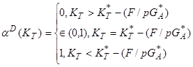 где mN - вероятность сокрытия высокого дохода, если исключается возможность взяток. Другими словами, байесовская вероятность равна mN =aH q/(aH q+1-q) (21) Опытные налоговые инспектора сталкиваются с более сложной проблемой, так как понимают, что каждый нечестный неплательщик действует согласно наилучшей для него стратегии при объявлении своего дохода. Пусть aD (KT ) - вероятность того, что нечестный неплательщик, для которого наказание за взятку составляет KT , скрывает свой высокий доход. ПустьaH - вероятность того, что честный неплательщик скрывает свой доход. В таком случае опытный налоговый инспектор максимизирует следующую функцию:
