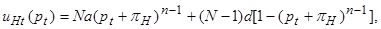 т.е. существуют три равновесия: 1. pt = 0; 2. pi = N / P; 3. f(uHt (pt )) = f(uCt (pt )), что означает uHt (pt ) = uCt (pt ) в силу монотонного возрастания функции f. (1) соответствует выбору коррумпированного поведения в каждой суперигре, (2) -выбору честного поведения, (3) -случаю, когда относительные выгоды честного и коррумпированного поведения будут одинаковыми. Такое равновесие существует при наличии очень малого числа всегда честных игроков (назовем это первым режимом системы) и отсутствует при наличии значительного числа честных игроков (назовем это вторым режимом системы). Эти две ситуации разделяются условием:
