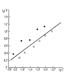 5*10 +0,186 -0,288 -0,642 1 0,000 -0,414 -0,828 позволяет указать на, то что кислородная деполяризация более термодинамически возможна чем водородная деполяризация. Изучение восстановления кислорода на неблагородных металлах (а именно они представляют наибольший интерес с точки зрения коррозии) затрудняется тем, что при катодной поляризации электрода металл может иметь потенциал более положительный, чем равновесный и, следовательно, подвергается окислению (ионизации). При катодной поляризации в определенном интервале потенциалов будут происходить одновременно два процесса восстановление кислорода и окисление металла. Окисление металла прекратится когда потенциал металла будет равен или станет отрицательнее равновесного потенциала металла. Эти обстоятельства затрудняют изучение процессов кислородной деполяризации. Схема кислородной деполяризации. Каждый процесс с кислородной деполяризацией включает следующие последовательные стадии: 1) Растворение кислорода воздуха в растворе электролита. 2) Транспортировка растворенного кислорода в растворе электролита (за счет диффузии или перемешивания) к слою Прандтля. 3) Перенос кислорода в части слоя Прандтля П( 4) Перенос кислорода в диффузионном слое электролита толщиной или в пленке продуктов коррозии металла к катодным участкам поверхности. 5) Ионизация кислорода: а) в нейтральных и щелочных растворах O2 + 4e + 2 H2 O = 4OH- ( водн ) б) в кислых растворах O2 + 4e + 4 H+ (водн) = 2Н2 O 6) Диффузионный или конвектный перенос ионов ОН от катодных участков поверхности корродирующего металла в глубь электролита. В реальных условиях коррозии металла наиболее затрудненными стадиями процесса являются: а) реакция ионизации кислорода на катоде. Возникающую при этом поляризацию называют перенапряжением кислорода. Говорят, что процесс идет с кинетическим контролем. б) Диффузия кислорода к катоду, либо перенапряжение диффузии. В этом случае, говорят, что процесс идет с диффузионным контролем. Возможны случаи когда обе стадии - ионизация кислорода и диффузия кислорода оказывают влияние на процесс. Тогда говорят, о кинетически-диффузионном контроле. 3.2 Перенапряжение ионизации кислорода. Перенапряжение ионизации кислорода чаще всего появляется в сильно перемешанных растворах, при интенсивной аэрации раствора (баротаж воздуха и др.), при наличии на металле тонкой пленки электролита (влаги) как и в случае с любой другой катодной реакцией восстановление перенапряжение ионизации кислорода зависит от катодной плотности тока, материала катода, температуры и некоторых других факторов. Если плотность тока достаточно высока i> А/м то перенапряжение ионизации кислорода является линейной функцией lgi т.е. имеет место зависимость тапа уравнения Тафеля V = - (Vk )э = х = a+b lg ik где а - постоянная зависящая от молярности катода его состояния, Т и пр., численно а=h при i=1; b постоянная зависящая от механизма возникновения перенапряжения. При заторможенности только реакции взаимодействия кислорода с электроном b=(RT/BnF)n 2,303 = 0,118/ n Зависимость перенапряжения ионизации кислорода на металлах в растворе: 0,5NaCl + 0,005MNaCO + 0,005MNaHCO (pH=9,2) в атмосфере кислорода при 20 С, раствор перемешивался а) в координатах б) в координатах . Катодная реакция ионизации кислорода состоит из цепи последовательных элементарных реакций, т.е. протекает стадийно: а) образование 