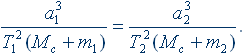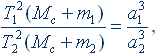 т.е. квадраты сидерических периодов планет (Т2 1 и Т2 1 ), умноженные на сумму масс Солнца и планеты (Мс +m1 и Мс +m2 ), относятся как кубы больших полуосей орбит планет (а3 1 и а3 1 ). Формула (5) может быть представлена в виде: