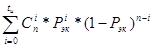= t и =1 - число гарантированно исправляемых кодом ошибок, Рэк =1,75*10-2 , исходя из этого вычисляем вероятность правильного декодирования: |