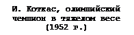 Рефератна тему: «История советской борьбы»Содержание 1. Возникновение борьбы 2. Русские борцы на олимпийских играх 3. На новом пути 4. Заключение Возникновение борьбы Борьба — один из самых древних популярных и зрелищных видов физических упражнений. Она вырабатывает смелость, гибкость, ловкость, находчивость и большую мускульную силу. Еще первобытные люди при исполнении обрядов или во время отдыха боролись друг с другом, и часто победитель становился во главе своего рода или целого племени. Из поколения в поколение передавались рассказы о победах сильнейших. Состязания в силе, выносливости и ловкости приобретали все большую популярность. О борьбе как любимом занятии в древности свидетельствуют многие архитектурные и литературные памятники: таблицы Вавилона, рисунки на гробницах, эпос разных народов. На гробнице египетского фараона Бахти (вторая половина V века до н. э.) сохранилось более 400 рисунков, на которых в определенной последовательности изображены приемы рукопашных схваток и стрельбы из лука. Значит, уже в то время борьба имела свою систему обучения и правила соревнований. В песне ХХШ “Илиады” рассказывается, как Ахиллес устроил на могиле своего друга Патрокла состязание в борьбе на призы. Боролись Одиссей и Аякс. Победитель получил медный треножник ценой в двадцать волов, побежденный — статую “Юная рукодельница”. В Древней Греции борьба как физическое упражнение, как зрелище получила наиболее яркое свое выражение. Недаром классификация борьбы начинается с греческой (этот вид спорта в зависимости от времени и места менял свое название: греческая, греко-римская, французская и теперь — в нашей стране — классическая). В Древней Греции были организованы специальные “гимнасии”, где профессионально велось преподавание борьбы с соблюдением определенного режима питания быта и тренировки. В рацион питания борцов входили фрукты, овощи, молочные продукты и мясо молодого козленка. Вино не употреблялось. О том, какое огромное внимание уделялось физическому воспитанию юношей в Греции, свидетельствует произведение древнегреческого писателя Лукиана (II век до н. э.) “Анахарсис, или Об упражнении тела”. Прибывший в Грецию из варварской Скифии Анахарсис не понимает того, что творится в этой стране. Он обращается к своему греческому знакомому — философу Солону. Приводим этот разговор в сокращенном виде: “Анахарсис. Скажи мне, Солон, для чего юноши проделывают у вас все это? Одни из них, перехватившись руками, подставляют друг другу ножку, другие давят и вертят, своих товарищей, валяются вместе в грязи и барахтаются в ней, как свиньи... Другие же делают то же самое во дворе, на чистом воздухе, только уже не в грязи, а набросав в яму много песку... Салон. Это место, Анахарсис, мы называем гимнасией и оно посвящено Аполлону Ликейскому. Что же касается гимнастических упражнений, то эта возня в грязи называется борьбой; борются также и в песке... Есть у нас и другие гимнасии... и в них мы устраиваем состязания, а победивший признается нами лучшим из сверстников и получает награду. Анахарсис. Каковы же у вас награды? Солон. На олимпийских играх венок из дикой маслины, на Истмийских — из сосновых ветвей, в Немее — венок из сельдерея, в Дельфах — яблоки с деревьев, которые посвящены богу. У нас же на Иллинейских мы даем масло от священного ол