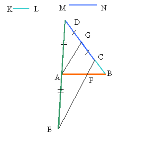Задача 6. Деление отрезка в данном отношении Отрезок, заданный на местности двумя точками А и В, требуется разделить в отношении, в котором находятся длины двух отрезков KL и MN, заданных на местности точками K, L и M, N. Как это сделать?