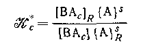 при условии, что коэффициенты активности в обоих фазах соответственно контролируются. Метод ограничивается системами комплексов катионных центральных групп с отрицательно заряженными лигандами. Катионный обмен не является ни относительно точным, ни относительно удобным методом для определения констант устойчивости большинства систем. Функцию nв(а) невозможно определить с такой же точностью, которую часто получают в потенциометрии, а интерпретация данных включает (с++1) параметров в дополнение к искомым величинам βn.Так как В не может меняться в большой области концентраций, то этот метод ограничивается моноядерными системами. Более того, возникают заметные изменения nв от а, если лигандом является анион. Однако метод пригоден для изучения систем, в которых В следует сохранять очень низким (например, вследствие образования полиядерных форм при макроконцентрациях или из-за большой радиоактивности или недостаточного количества группы В). Наиболее удобно, когда происходит распределение только центральной группы, но для катионного обмена были получены обнадеживающие результаты, которые согласуются с данными других методов в системах с с+>0. Анионный обмен Анионный обмен, так же как и катионный, может быть применен для изучения комплексообразования между положительно заряженной центральной группой и отрицательно заряженным лигандом. Однако его использование осложнено тем, что в добавление к анионным комплексам на смоле также адсорбируются лиганд и анион фонового электролита. Поэтому состав обменника и, следовательно, коэффициенты активности в фазе смолы будут сильно меняться в зависимости от состава водной фазы, если в макроконцентрации присутствует более чем один тин аниона. В таких случаях коэффициент распределения является чрезвычайно сложной функцией от а. Поэтому для изучения анионного обмена нельзя применять фоновый электролит, если лиганд не присутствует в микроконцептрациях. Но часто оказывается, что для образования анионных комплексов необходимы высокие концентрации свободного лиганда. В благоприятных случаях коэффициенты активности в обменнике можно считать постоянными, если используются следовые концентрации группы В и если обменник насыщен лигандом. Однако анионообменный метод имеет тот большой недостаток, что поскольку не может быть использована постоянная ионная среда, то нельзя контролировать коэффициенты активности в водной фазе. Фронеус был первый, кто попытался количественно обработать результаты анионного обмена для комплексов металлов. Его метод был значительно расширен Маркусом и Корьеллом, Фоминым к его сотрудниками. Адсорбцию анионного комплекса ВАС можно представить реакцией