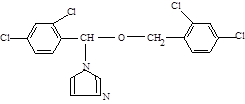7) Миконазол или 1-[2,4-дихлор-β-(2,4,-дихлорбензолокси)-фенэтил]-имидазол. Другое название – альбистат, гонофит, дерманистат. Применяют при поражении кожи и ногтей дерматофитами и грибками, сопровождающихся воспалениями. Эффективен при микозах с суперинфекцией грамположительными бактериями.