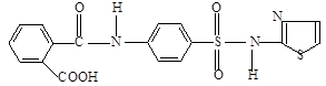 3) Фталазол или 2-(пара-фталаминобензосульфамидо)-тиазол. Это белый с желтоватым оттенком порошок, нерастворимый в воде. Применяют при дизентерии, колитах, гарстроэнтеритах, при оперативных вмешательствах на кишечнике, для предупреждения гнойных осложнений.