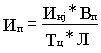 где Инj – количество сырья, потребляемого за один j – й цикл; Вп – плановый выход продукции из единицы сырья; Тц – продолжительность одного цикла (оборота), час. Когда в аппарат загружается сырье нескольких видов, выход определяют по основному сырью и в формулу вводят коэффициент, характеризующий отношение веса этого основного сырья к весу общей загрузки. Мощность оборудования периодического действия можно также определять, исходя из плановой нормы интенсивности (или производительности), выраженной в единицах готовой продукции. Производительность оборудования в единицах готовой продукции равна: