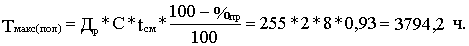 где Тэф – эффективный фонд времени работы единицы оборудования, час; Тц – время производственного цикла работы оборудования, час; Зс – объем загрузки сырья на один цикл; bгп – выход готовой продукции из единицы сырья; а – количество однотипных аппаратов, машин, агрегатов, установленных в отделении (цехе). В условиях многономенклатурного производства производственная мощность определяется, как частное от деления фонда времени работы оборудования на трудоемкость комплекта изделий (деталей), изготавливаемых на данном оборудовании: