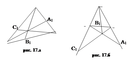 ![]() Точки А1, В1 и С1 лежат на одной прямой тогда и только тогда, когда