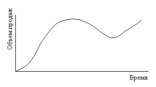 4. "Продолжительное увлечение" – быстрый взлет, быстрый спад, но имеет место устойчивый остаточный сбыт