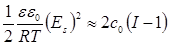 где Показано, что внешняя концентрация раствора сильно влияет на диапазон плотностей тока, при которых соблюдается условие квазиравновесия на межфазной границе. При малых значениях c0 квазиравновесные условия соблюдаются в достаточно широком диапазоне безразмерных плотностей тока, а при больших концентрациях условия квазиравновесия нарушаются уже при i >2×iпр. Для важной с точки зрения практики электродиализа концентрации c0=10-5¸10-4 Моль/см3 условия квазиравновесия на межфазной границе обеспечиваются в диапазоне плотностей тока от iпр до 2 ¸ 10·iпр. Режим Шоттки реализуется в другом крайнем случае, когда концентрация подвижных ионов на межфазной границе становится пренебрежимо малой (аналогичные условия имеют место в p-n переходах полупроводников и в биполярных мембранах). При этих условиях в уравнении (20) величинами граничных концентраций можно пренебречь (c1(d)=0; c2(d)=0). В этом случае граничная напряженность электрического поля Es определяется безразмерной плотностью тока I и внешней концентрацией: