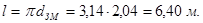 Для расчета количества витков змеевика принимаем диаметр витка змеевика dзм =2,040 м , диаметр трубы змеевика dтр = 0,053 м , расстояние между витками по вертикали h= 1,50 м . Длина одного витка змеевика как винтовой линии составит