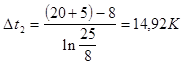 6.1 Определение количества теплоты Q2 . отводимое хладагентом или подводимое теплоносителем, для каждой стадии I стадия. Q3 = 0, так как не протекает никаких химических превращений. Q1 + Q2 = Q4 + Q5 + Q6 Q2 = 1,05 ( Q4 + Q5 - Q1 ) Q4 = [92,00 × 0,99 + (2200 + 244,5) × 4,18 ] × 271 = 2,79 × 106 КДж Q5 = 1350 × 0,549 × (271 - 293) = -1,63 × 104 Дж Q1 = [92,00 × 0,99 + (2200 + 244,5× 4,18 ] × 293 = 3,02 × 106 КДж Q2 = 1,05 (2,79 × 106 - 1,63×104 - 3,02 × 106 ) = -2,60 × 105 КДж II стадия. Q3 = [ 121,0 × 4,19 × 1000 × 3,15 ] / 121 = 1,32 × 104 КДж Q2 = 1,05 ( Q4 + Q5 - Q3 - Q1 ) Q4 = [121,00 × 1,68 + 92,00 × 0,99 + (2200 + 244,5+24,8) × 4,18 ] × 270 = 2,87 × 106 КДж Q5 = 1350 × 0,549 × (270 - 271) = - 0,74× 103 КДж Q1 = 121,00 × 1,63 × 293 + 2,79 × 106 = 2,85 × 106 КДж Q2 = 1,05 (2,87 × 106 -1,32 × 104 - 0,74× 103 -2,85 × 106 ) = -1,63 × 104 КДж III стадия. Q5 = 0 Q1 + Q2 + Q3 = Q4 + Q6 Q2 = 1,05 ( Q4 - Q1 - Q3 ) Q4 = [ 163,0 × 1,28 + 14,7 × 1,28 + 58,5 × 0,9 + 15,3 × 0,99 + 9,8 × 1,71 + + (2200 + 244,54+24,8+ 177,1 + 37,8) × 4,18 ] × 274 = 3,15 × 106 КДж Q1 = [121,00×1,68+92,00×0,99+76×1,03 + (2200+244,5+24,8+177,1)×4,18 ]×270 = 3,09×106 КДж Q3 = [121×4,19×(1000 × 0,967 × 23,81 + 34,5 × 10) ] / 121 = 9,8 × 104 КДж Q2 = 1,05 (3,15 × 106 - 3,09×106 - 9,8 × 104 ) = -3,9 × 104 КДж 6.2 Расчет поверхности теплообмена I стадия. В качестве хладоагента используется рассол с начальной температурой -10°С и конечной температурой -5°С. Теплоемкость примем как для воды. Противоток: