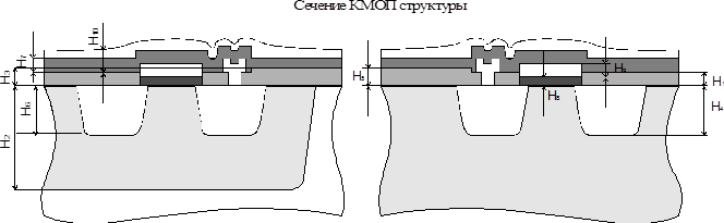 МАРШРУТ ИЗГОТОВЛЕНИЯ КРИСТАЛЛА 564ИЕ10 1. Формирование партии пластин. 2. Гидромеханическая отмывка пластин. 3. Химическая обработка. Смесь Каро (H2 SO4 +H2 O2 ), перикисьно-амиачная смесь. Оборудование— линия “Лада 125”. 4. Окисление 1. Установки СДОМ, АДС. Температура 1000О С. О2 +пар. 5. Фотолитография. Формирование области р-кармана. 5.1. Нанесение фоторезиста. Фоторезист — ФП383. Установка ХБС. 5.2. Совмещение экспонирования пластин ЭМ — 576А. 5.3. Проявление фоторезиста. Проявитель — едкий калий. 5.4. Дубление фоторезиста. Установки “Лада”. 5.5. Травление окисной пленки. Буферный травитель. 5.6. Контроль. 6. Ионное легирование. Бор 1. “Карман”. Установка “Лада 30”. 7. Снятие фоторезиста. 7.1. Плазма. Установка “08 ПХО 100Т-001” 7.2. Смесь Каро. 8. Химическая обработка. 9. Разгонка бора. “Карман”. Температура 1200О С. О2 +азот. 10. Вторая фотолитография. Формирование областей сток- исток р-канальных транзисторов и р+ -охраны. 11. Ионное легирование. Бор 2 . Сток- исток. Установка “Везувий-3М”. 12. Снятие фоторезиста. Плазма и смесь Каро. 13. Химическая обработка. 14. Разгонка бора. Сток- исток. Температура 1000О С, О2 +пар. 15. Третья фотолитография. Формирование областей сток- истока n-канальных транзисторов и n+ -охраны. 16. Химическая обработка. 17. Загонка фосфора (диффузионный метод). Температура 900О С. Диффузант — POCl3 . 18. Снятие фосфорселикатного стекла. HF : H2 O =1 :10. 19. Разгонка фосфора. Температура 1000О С. О2 +пар. 20. 4Я фотолитография. Вскрытие областей под затвор и контактные окна. 21. Окисление 2 — подзатворный диэлектрик. Температура 1000О С. О2 +HCl. 22. Стабилизация фосфора. Температура 900О С. Диффузант — POCl3 . 23. Подлегирование. 24. Отжиг подзатворного диэлектрика. 25. 5Я фотолитография. Вскрытие контактных окон. 26. Химическая обработка. 27. Напыление Al+Si. Установка “Магна 2М”. 28. 6Я фотолитография. Формирование алюминиевой разводки. 29. Вжигание алюминия. Температура 475О С в азоте. 30. Нанесение защитного окисла. Температура 400О С. SiH4 +O2 . Установка “Аксин”. 31. 7Я фотолитография. Вскрытие контактных площадок. 32. 8Я фотолитография. Защита пластин фоторезистом. 33. Контроль ВАХ (пробивное напряжение, пороговое напряжение, прямое напряжение и др.). 34. Контроль электрических параметров. 35. Контроль внешнего вида. ОПЕРАЦИЯ СПЕЦОКИСЛЕНИЕ Оборудование. система диффузионная (см табл. 1) стол монтажный СМ-4 А2МО 238 001 ТУ реактор кварцевый Æ07-0397 реактор кварцевый Æ07-0541 крючок кварцевый Æ09-1067 лодочка кварцевая Æ09-1216 подставка Æ09-1215 стаканчик СВ24/70 ГОСТ 25 336-82 пинцет ПС 160х3.0 ТУ 64-1-37-78 пинцет Æ09-1114 часы электрические вторичные показывающие ВЧС2-М2ПВ-400-323К ТУ 25-67-1503-82 пластина кремния 7590592 10300 00022 пластина кремния спутник 7590592 10300 00022 водород хлористый сжиженный марки Э ТУ 6-01-4689387-42-90 спирт этиловый ректификованный технический марки “Экстра” ГОСТ 18300-87 кислород СТП ТВО 054 003-89 азот СТП ТВО 054 003-89 напальчники типа II вида Б№4 ТУ 38.106567-88 салфетка из мадаполама (350х253) мм 7590592 10301 00043 салфетка из батиста (150х150) мм 7590592 10301 00045 пленка полиэтиленовая марки На, полотно, 0,040х1400, I сорт ГОСТ 10354-82 Подготовка рабочего места и организация трудового процесса. 1.1 Подготовку рабочего места и организацию трудового процесса проводить в соответствии с требованиями табл. 1. 1.2 Технологическую операцию осуществлять с соблюдением требований ТВО 045 954 ИОТ, 17.25351.00003 ИОТ, ТВО 045 829 ИОТ, ТВО 045 982 ИОТ. 1.3 Соблюдать требования производственной гигиены по СТП 17-001-90. 1.4 Параметры 