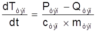 где dTвозд /dt - скорость изменения температуры воздуха. cвозд - теплоемкость воздуха: cвозд = (св + cп ´ dв /1000), где св - теплоемкость сухого воздуха, при температуре 40°С : св = 1005 Дж/(кг´гр); сп - теплоемкость перегретого пара: сп = 2000 Дж/(кг´гр); dп - влагосодержание воздуха, при температуре 40°С и относительной влажности 75% оно равно: dп = 36,9 г/кг; Таким образом: cвозд = (1005+2000´36,9/1000) =1079 Дж/(кг´гр); mвозд - масса воздуха в расстойном шкафу; mвозд = rвозд ´ Vвозд , где rвозд - плотность влажного воздуха в камере расстойного шкафа, при температуре 40°С и относительной влажности 75%: rвозд = 1,11 кг/м3 ; Vвозд - объем воздуха в камере расстойного шкафа: Vвозд = 2 м3 ; Таким образом: mвозд = 1,11 ´ 2 = 2,22 кг; Тепловой поток с поверхности ТЭНов описывается с помощью уравнения конвективной теплопередачи: Qтэн = Ктэн ´ (Ттэн - Твозд ), где Ттэн - температура ТЭНов; Твозд - температура циркулирующего воздуха. Ктэн - коэффициент, расчитываемый по формуле: Ктэн = aтэн ´ Sтэн , где Sтэн - площадь поверхности ТЭНов: Sтэн = lтэн ´p´ dтэн , где lтэн = 2 м - длина ТЭНов; dтэн = 0,006 м - диаметр ТЭНов, Откуда: Sтэн = 2 ´p´ 0,006 = 0,0377 м2 ; aтэн - коэффициент теплоотдачи ТЭНов. Данный коэффициент расчитывается по критериальному уравнению: Nu = 0,238 ´ Ref 0,6 , где Ref - число Рейнольдса, вычисляемое: Ref = u´ dтэн / n, где u - скорость потока воздуха: u = 5 м/c dтэн - диаметр ТЭНов - их определяющий размер: dтэн = 0,006 м; n - коэффициент кинематической вязкости, для воздуха при температуре 40°С : n = 16,96 ´ 10-6 м2 /с. Таким образом: Ref = 5 ´ 0,006 / 16,96´10-6 = 1769, Следовательно: Nu = 0,238 ´ 17690,6 = 21,15 , Откуда: aтэн = Nu ´l / dтэн , где l - коэффициент теплопроводности воздуха, при температуре 40°С: l = 2,76´10-2 Вт/(м´гр), Значит: aтэн = 21,15 ´ 2,76´10-2 / 0,006 = 97 Вт/(м2 ´ гр). Таким образом: Ктэн = 97 ´ 0,0377 = 3,6568 Вт/гр и Qтэн = 3,6568 ´ (Ттэн - Твозд ). При этом, излишки энергии ТЭНов идут на изменение их температуры: