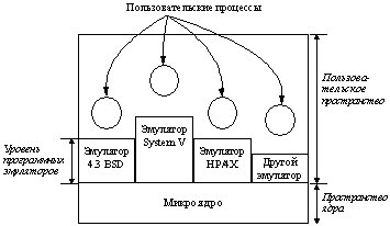 Функции микроядра Mach: управление процессами, управление памятью, коммуникации функции ввода-вывода Функции управления файлами, каталогами и другие традиционные для операционных систем функции выполняются в пользовательском пространстве эмуляторами различных ОС Функционирование защищенных систем Windows NT Модель API на основе DLL Модель API Windows NT
