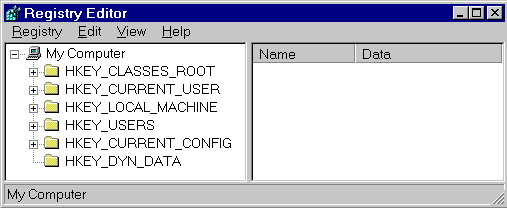 Использование Regedit для изменения системного реестра Как только Regedit открыт, Вы заметите, что левую сторону занимает дерево с папками, а правую содержание выбранной папки. Чтобы развернуть некоторую ветвь, нажмите на знак "плюс" [+] слева от любой папки, или дважды щелкните на папке. Для отображения содержание папки, нажмите на нужный ключ, и Вы увидите параметры, перечисленные на правой стороне. Вы можете добавить новый ключ или параметр, выбирая пункт «Создать», из меню «Правка», или щелкая правой кнопкой мыши. Так же Вы можете переименовать любой параметр и почти любой ключ тем же методом, что и переименовываете файлы; щелкните правой кнопкой мыши на объекте, и выберете «Переименовать», или нажмите на нем дважды (медленно), или нажмите F2 на клавиатуре. Наконец, Вы можете удалить ключ или параметр, выбирая его, и, нажимая «Delete» на клавиатуре, или щелкая правой кнопкой мыши на параметре, и выбирая «Удалить». Обратите внимание: Всегда резервируйте Ваш системный реестр перед созданием любых изменений в нем. Это даст Вам возможность не переустанавливать операционную систему в случае неправильных действий. Гораздо лучше перестраховаться, чем потом жалеть! Системный реестр имеет иерархическую структуру, которая подобна структуре каталогов на Вашем жестком диске, а Regedit подобен Проводнику Windows. Каждая главная ветвь (обозначенная значком папки в редакторе системного реестра, см. ниже) называется Корневой и содержит ключи. Каждый ключ может содержать другие ключи (иногда называемые подключами), а также параметры. Параметры содержат фактическую информацию, сохраненную в системном реестре. Имеется три типа параметров; Строковые, Двоичные, и DWORD. Реестр имеет шесть главных ветвей, каждая из которых содержит определенную часть информации. Это следующие ветви: · HKEY_CLASSES_ROOT: Эта ветвь содержит все типы Ваших ассоциаций к файлам, информацию об OLE и данные по ярлыкам. · HKEY_CURRENT_USER: Эта ветвь связана с ветвью HKEY_USERS, и соответствует пользователю, работающему в настоящее время на PC. · HKEY_LOCAL_MACHINE: Эта ветвь содержит определенную информацию о типах аппаратных средств, программного обеспечения, и других настройках на данном PC, эта информация используется для всех пользователей, которые работают на этом компьютере. · HKEY_USERS: Эта ветвь содержит индивидуальные настройки каждого пользователя компьютера, каждый пользователь представлен под ключом SID, расположенном под главной ветвью. · HKEY_CURRENT_CONFIG: Эта ветвь связана с ветвью HKEY_LOCAL_MACHINE, и соответствует текущей аппаратной конфигурации. · HKEY_DYN_DATA: Эта ветвь связана с частью HKEY_LOCAL_MACHINE, и служит для использования особенностей Plug-&-Play в Windows, этот раздел динамически изменятся, когда устройства добавляются и удаляются из системы. Импорт и Экспорт параметров настройки системного реестра Полезной особенностью Редактора системного реестра является способность импортировать и экспортировать параметры системного реестра в текстовый файл, этот текстовый файл имеет расширение .REG, может быть сохранен а затем использован другими людьми для боле простого изменения локальных параметров системного реестра. Вы можете просмотреть содержание этих текстовых файлов, экспортируя ключ в испытательный файл и открыв его в Блокноте. В Редакторе системного реестра выберете ключ, затем из меню "Реестр" выберете "Экспорт файл реест